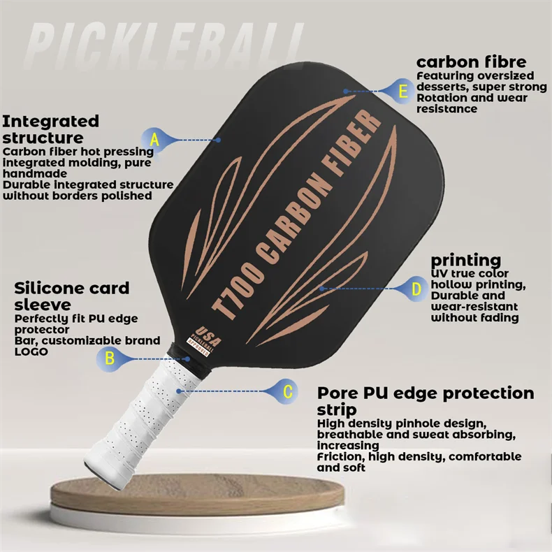 Custom Print High Quality Carbon Fiber Training Pickleball Paddle Edgeless Honeycomb Usapa Approved Racket